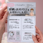 - フライヤー作成この度、収納アドバイザーYOKO様のフライヤーを作成いたしました。 YOKO様の雰囲気にあったカラー(やわらか… 続きを読む: フライヤー作成