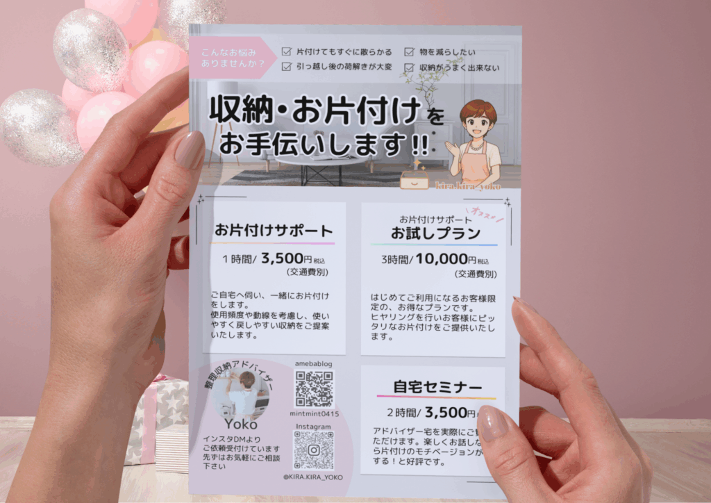 この度、収納アドバイザーYOKO様のフライヤーを作成いたしました。